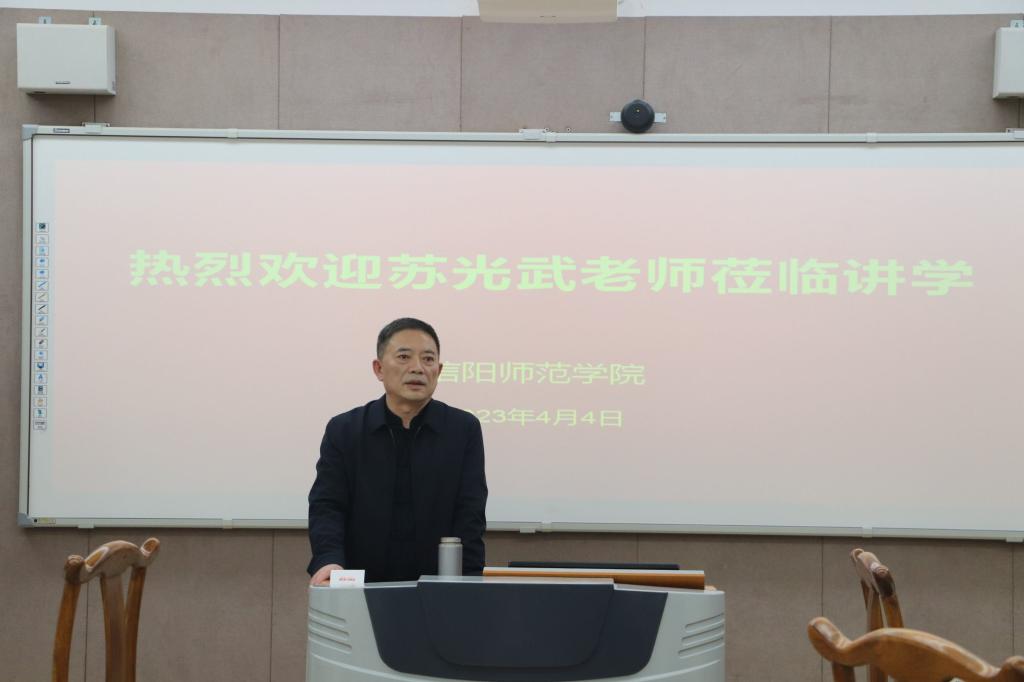 为进一步传承和弘扬中华民族优秀传统文化,培养大学生对书法的兴趣,修身养性、陶冶情操,不断提升美学修养。4月4日下午,应学校学生工作部(处)与best365英国体育在线的邀请,中国书协会员、信阳市书协副主席苏光武老师莅临best365英国体育在线,开展了题为《书法审美与修身养性》的讲座,学校大学生心理健康教育中心主任、学生工作处副处长李贵杰,学院党委副书记王艳蕊、副院长李文田以及部分学生参加讲座交流。