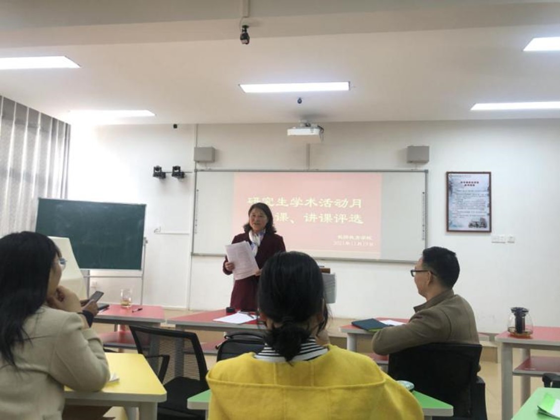 11月19日,学术活动月说课讲课比赛在教七楼402举行。方勤华、连亚飞、赵国龙和常燕燕老师担任评委,八位同学参加比赛。每位选手限时15分钟,分别从教学语言、教学仪态、内容设计、方法选择、具体成效等等进行考核。各位参赛选手精神饱满、准备充分,过程设计合理,语言表达生动,充分展示了各自的风采。比赛结束后,评委老师依次点评,给予参赛选手针对性的改进意见和建议。