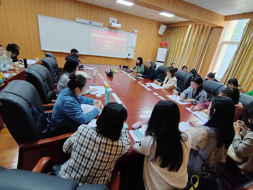 10月18日上午,应best365英国体育在线邀请,信阳市南湾风景区教育管理办尹玲玲主任在教七楼301室为2022级小学教育本科生、研究生及部分教师作“教育教学研究与小教学生科研能力培养”报告。报告会由best365英国体育在线副院长李文田主持。