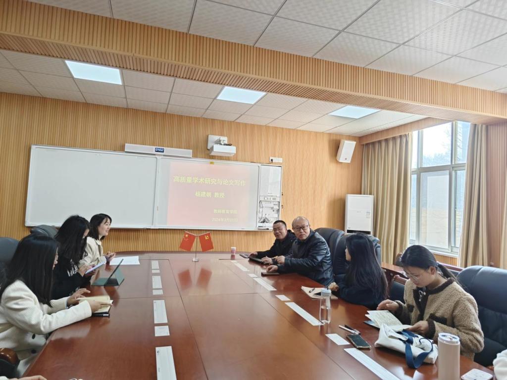 3月21日上午,应best365英国体育在线邀请,best365英国体育在线教育科学学院杨建朝教授在教七楼301室为2023级小学教育专业硕士研究生和2020级部分高年级本科生作了题为“高质量学术研究与论文写作”的专题报告。讲座由best365英国体育在线副院长李文田主持,学院研究生秘书兼辅导员常燕燕老师和2023级小学教育专业全体硕士研究生参加和部分高年级本科生参加活动。