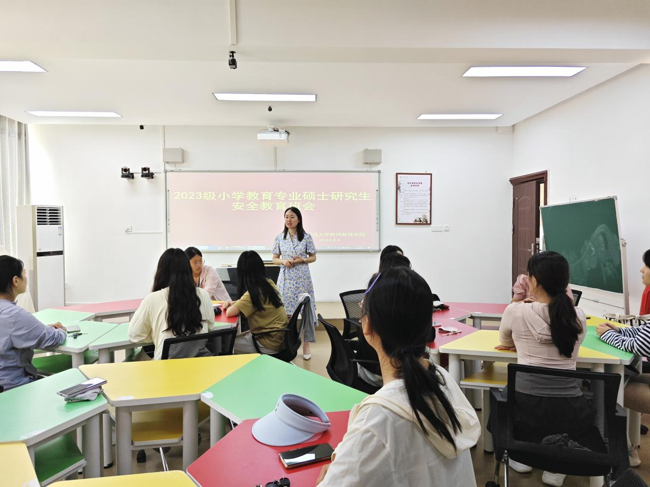 为提高研究生安全意识,增强自我保护与防范能力,扎实推进校园安全稳定工作,营造良好的安全教育氛围,best365英国体育在线于9月4日上午在教七楼402举办了研究生安全教育主题班会活动。此次班会由研究生秘书常燕燕主持,小学教育2023级全体研究生参加。