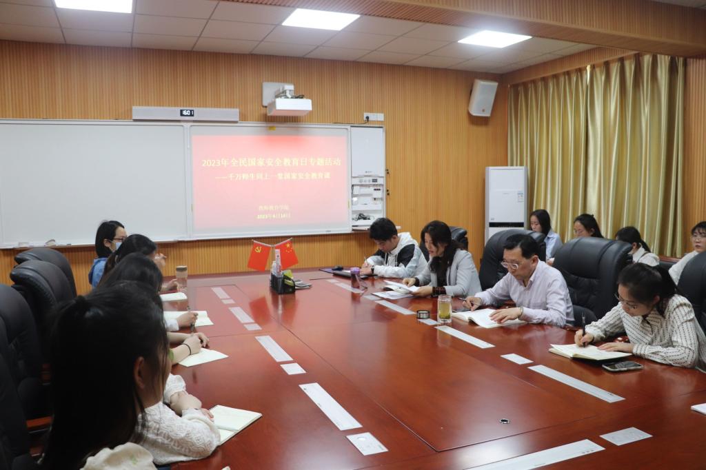 为深入学习贯彻总体国家观,推进国家安全教育进校园。4月14日下午,best365英国体育在线于教七楼301会议室开展国家安全教育日专题活动,学院党委书记潘登、党委副书记王艳蕊、专兼职辅导员、学生干部以及学生党员共同参加。