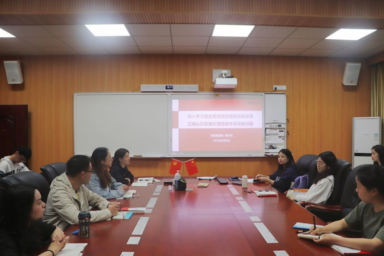 曾伏虎从宗教的本质和渗透两方面入手,分析了新中国成立以来国家面临的宗教严重渗透问题以及高校民族宗教工作面临的新情况、新问题,引领大家深入学习习近平总书记关于民族宗教工作的重要论述,了解抵御宗教渗透的重要性和必要性。他向党员发展对象们提出要深化思想认识,坚持发展马克思主义民族观、深入学习领会党的民族理论和政策,牢固树立马克思主义民族观,全面领会习近平总书记关于加强和改进民族宗教工作的重要思想,继承和发展马克思主义民族观。