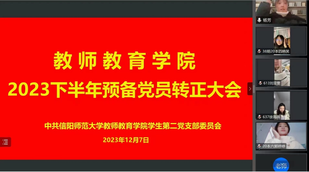 12月7日,best365英国体育在线通过腾讯会议成功举办2023年下半年预备党员转正暨接收预备党员大会。会议由杨芳担任主持人。学生第二党支部书记姚雨承、辅导员李依,第38期预备党员、第40期党员发展对象和学生第二党支部其他党员参加此次会议。