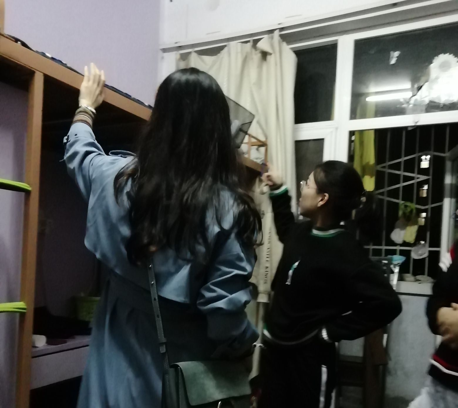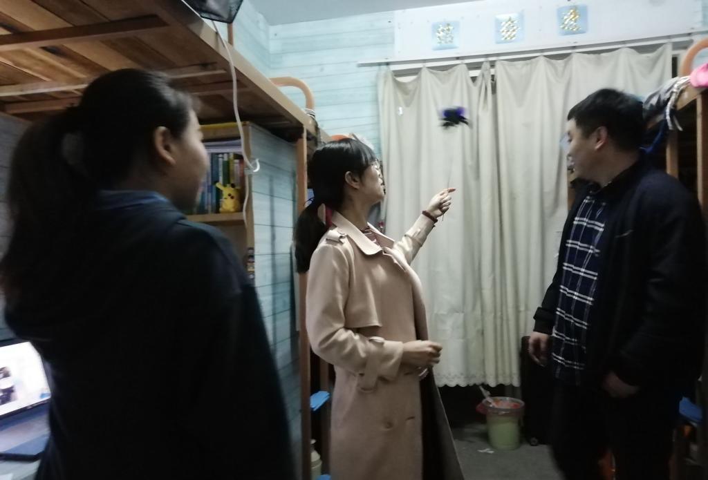 在走访过程中,三位老师与同学们进行亲切交流,了解学生的学习和生活情况,并对同学们提出的学习、生活和校园安全管理等各方面的问题进行解答;亲切叮嘱同学们要注意天气变化,及时添衣添被。同时,就宿舍晚归、外宿及使用违禁电器等问题对学生进行预防教育,希望同学们安全意识常存心中,将安全隐患从思想上杜绝。