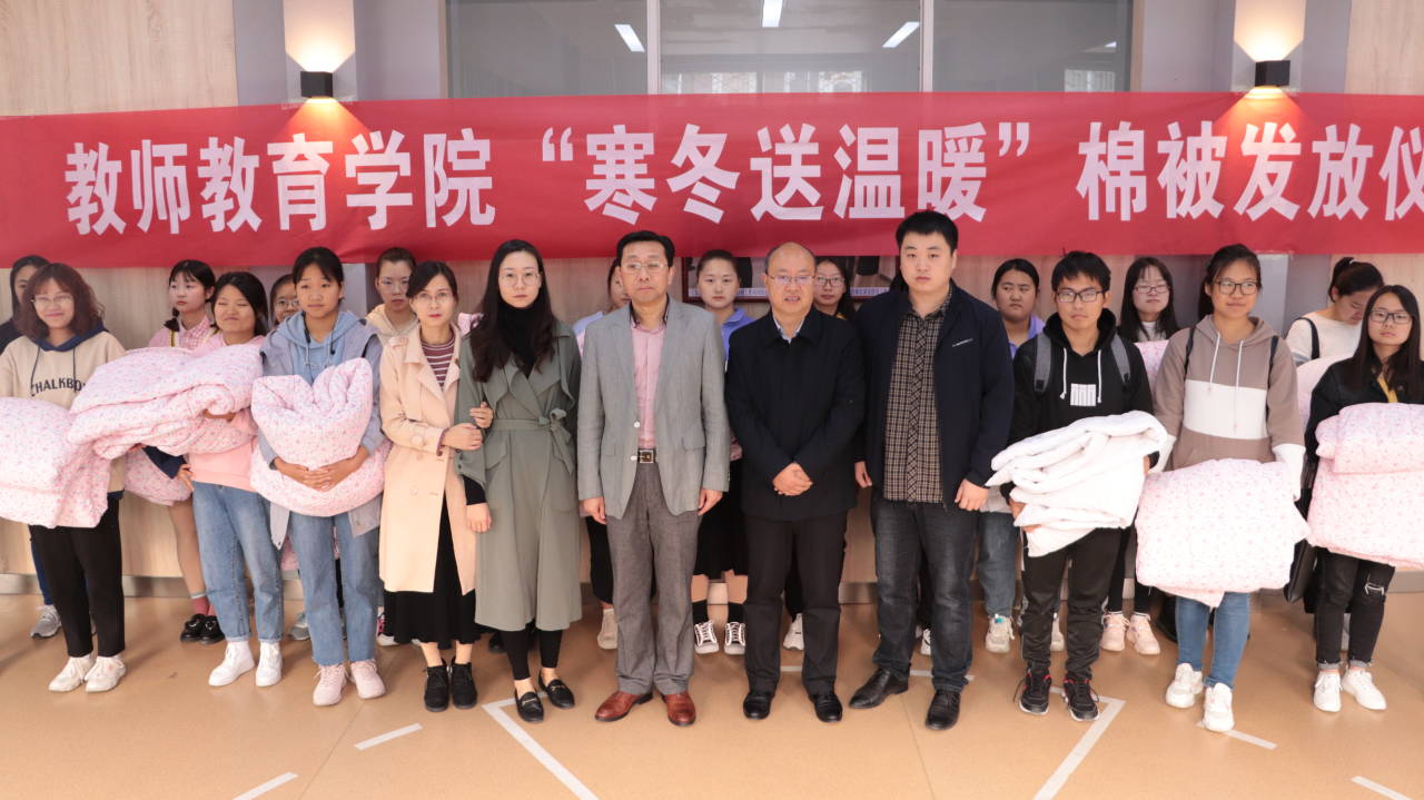 为进一步深入“不忘初心、牢记使命”主题教育,帮助学子温暖过冬,11月14日,best365官网“不忘初心、牢记使命”主题教育2019年“寒冬送温暖”系列活动在教七楼104教室举行。best365官网党委副书记潘登、党委委员李文田出席了仪式,辅导员李依、郑亚丽、刘莅原及25名受助学生代表参加了爱心棉被发放仪式。