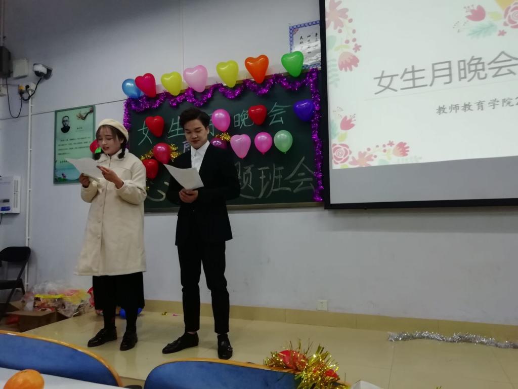11月10日以来,以趣味比赛—“看谁坐到板凳”、“三人两足跑”的女生月素质拓展活动在一棵树广场举办,现场气氛十分活跃。此后,多种新颖有趣的比赛形式推动着女生月活动不断持续深入,学院以班级为单位陆续举办了多场女生月晚会,从会场的布置、节目的策划再到活动开展,大家以表演、唱歌、跳舞、朗诵等方式积极参与,晚会中还穿插具有互动性的小游戏,既带动了现场气氛,又拉近了同学们之间关系。