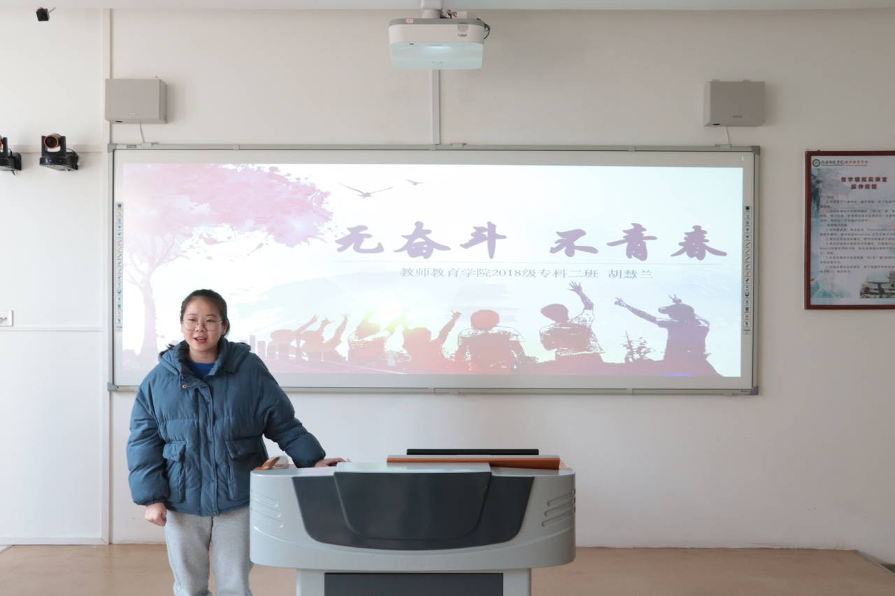 此次评选活动历时十天,经过初赛的选拔,共有15名选手成功进入决赛。其中,2019级本科二班的张秋雨围绕主题“青春正能量,锦绣未来长”,以灯光、电脑屏幕荧光、人生阅历之光为喻,分别讲述了自己在学习上、工作上、社会实践上的经历和收获,并用一段志愿誓词表达了自己对公益事业的热爱,以及将志愿服务进行到底的决心。2018级本科二班的夏爱梅则以“益重青春志,奋斗当自强”为题向大家讲述了她的帮扶历程,她讲到,通过加入所在城镇的扶贫工作,她了解到了贫困家庭遇到的问题和困难,同时,积极呼吁当代大学生能够投身扶贫第一线中,结合基层发展的需要,用自己的知识为当地的发展贡献自己的力量。2019级本科二班的鲁向悦分别从“穷且益坚,不坠青云之志”和“充实自我,不负青春年华”两个方面进行演讲,她表示同学们应以艰苦朴素的生活态度、严谨踏实的工作作风、勤学善思的学习方法不断地充实自己,为今后的教学实践打下坚实基础。在决赛过程中,选手们以清晰流利的表达,充实细致的演讲内容,自信从容的姿态,赢得了在场观众的阵阵掌声。活动最后,评委老师李依、徐亚南分别从公益明星和励志明星两个方面作总结点评,并寄语参赛选手要勇敢面对挫折,正视失败,砥砺前行,成为一名真正的励志明星。