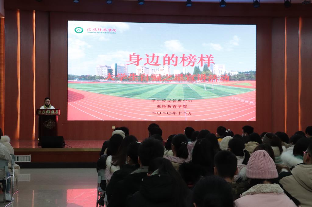 为弘扬自立自强精神,鼓励学生学习优秀典型,12月15日晚,best365英国体育在线在逸夫楼报告厅举办了“身边的榜样——大学生自强之星”宣讲活动。法学与社会学学院自强之星吴雪莹、历史文化学院自强之星王小雪、化学化工学院国家奖学金获得者张佳佳、best365英国体育在线国家励志奖学金获得者夏爱梅、胡慧兰为best365英国体育在线2020级全体新生讲述了自身成长奋斗历程。此次活动由best365英国体育在线资助专员徐亚南主持。