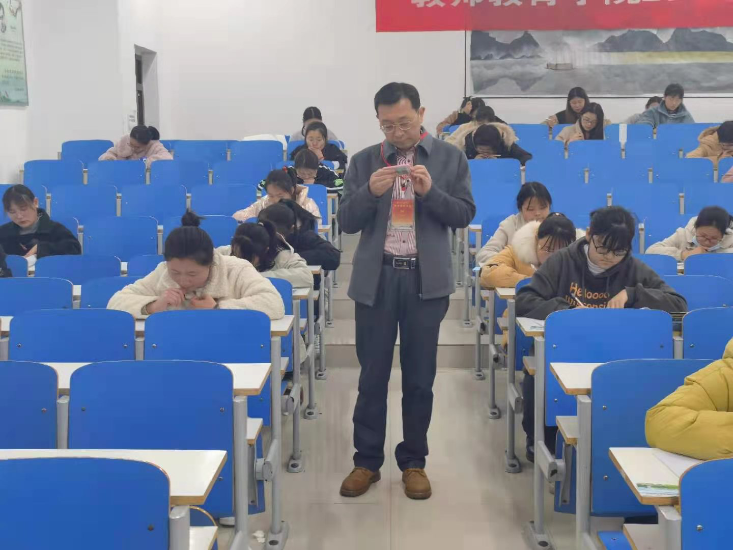 学院领导严格按照学校要求,落实学院关于此次考试的监考安排,对考试组织、考场秩序、监考教师履职及学生考纪等情况都做了详细检查。巡考期间,考场考试组织规范,监考教师准时到岗、认真负责,学生自觉遵守考试纪律、专心作答,考场秩序井然,巡考老师对学院考风考纪工作均表示了肯定。潘登书记指出,考风考纪是best365官网学风建设的重要环节,学院在后续的考试工作中要严密考试程序,积极营造考风端正、考纪严明的环境,确保期末考试工作顺利进行。