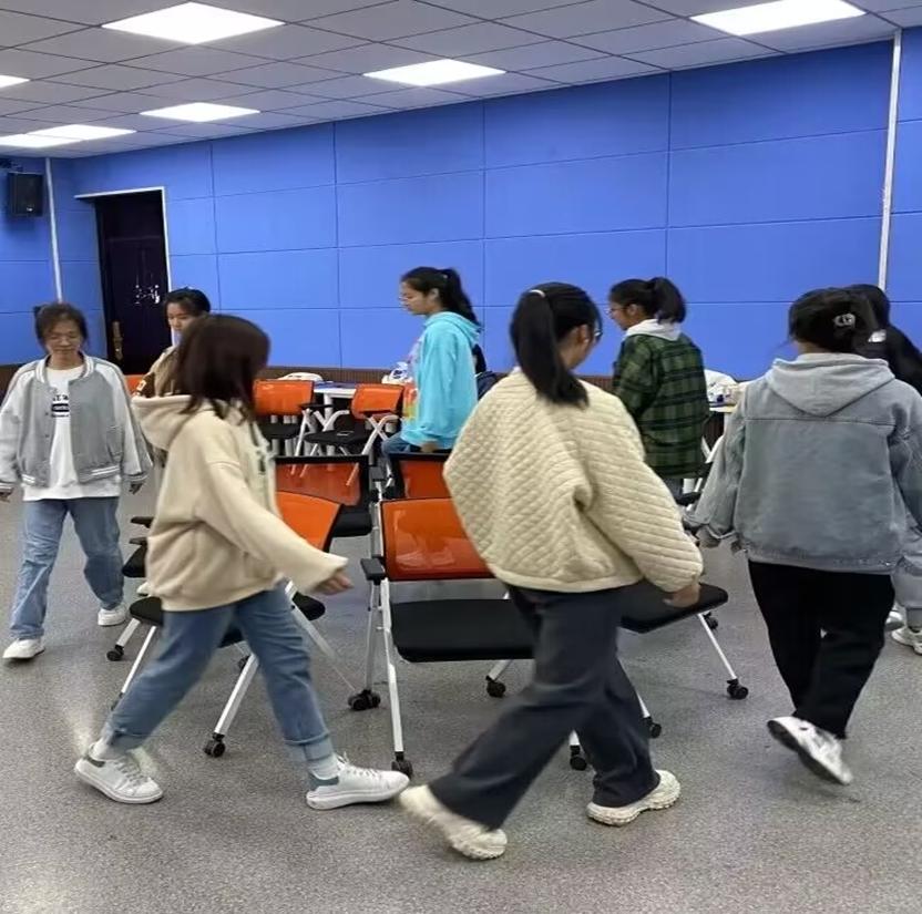 活动伊始,主持人陈思怡、刘滢瑞宣布本次活动规则并进行小组划分。活动中,全体同学积极参与,营造了积极活跃的氛围。在“逢七过”环节,同学们依靠观察力和推算能力,快速通关,展现了同学们敏捷的思维能力;在“你划我猜”环节,同学们运用肢体语言的方式,通过自由搭配和小组比赛,培养同学们的默契度,在小组合作中增进团体意识;在“定时炸弹”环节,同学们依次有序进行游戏,遇到“炸弹”时互相帮助,在紧张与刺激中展现了合作的力量。活动最后,2022级全体学生进行了大合唱演奏。本次新生团体辅导活动圆满结束。