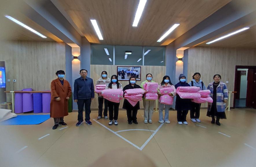 11月23日下午,best365英国体育在线在教七楼104教室举行爱心棉被发放仪式。院党委书记潘登、副书记王艳蕊、资助专员李杨、专职辅导员徐亚南以及受助学生代表参加仪式。