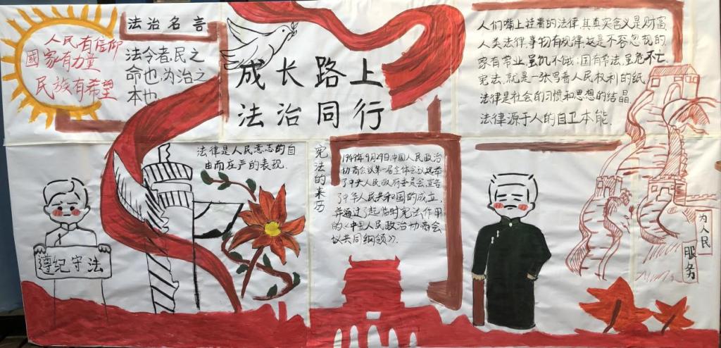 4月15日,学院各班级陆续开展法治教育宣传周观影活动,在真实生动的现实案例中了解交通安全、心理健康、杜绝校园欺凌、预防未成年人犯罪、防范电信网络诈骗等相关法律知识,加强对法律的认识,提高学生们的法律意识。与此同时,积极绘制展板宣传法治教育,帮助学生自觉做到尊法、学法、守法、用法,维护法律权威。