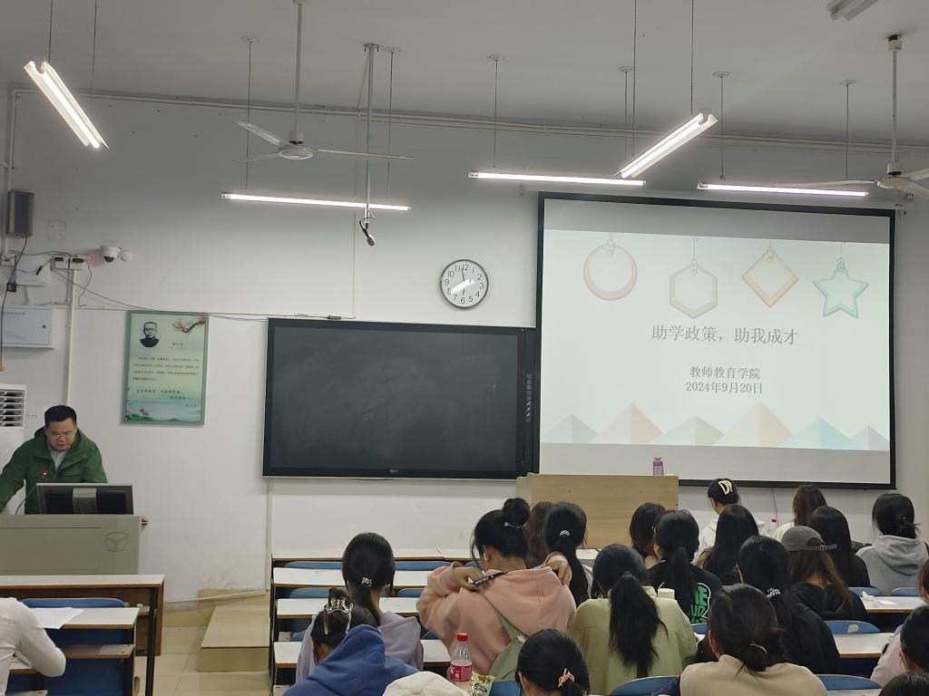 为深入贯彻国家资助政策,落实立德树人根本任务,强化资助育人效果,进一步营造良好的校园育人环境,提升学生对资助政策的认知与理解,best365英国体育在线积极配合学校资助宣传工作,本次资助宣讲活动由各年级分别展开进行,2022级本科三班在教九楼503教室举行,由姚雨承老师主持。2024级新生在教六楼102教室举行,由陈昱洁主持。