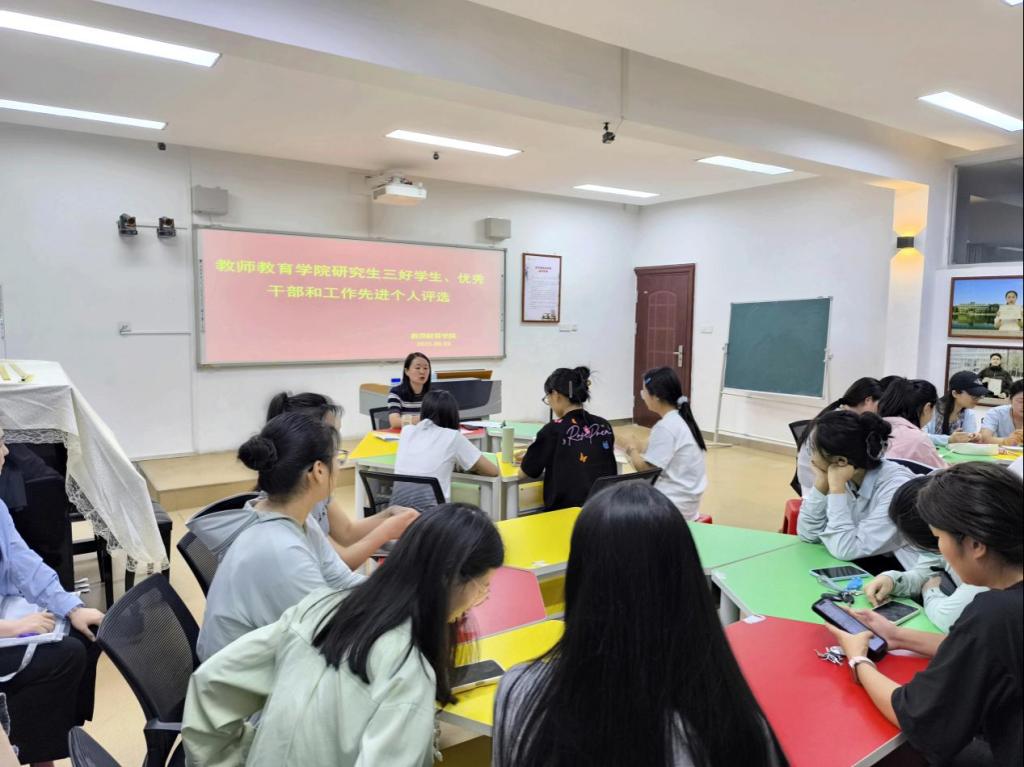 为表彰先进、树立典型,激励研究生在各方面积极进取。best365英国体育在线于6月3日下午在教七楼402举行了研究生三好学生、优秀干部和先进个人评选活动。本次活动由学院研究生秘书兼辅导员常燕燕老师主持。2023级、2024级全体研究生参加。