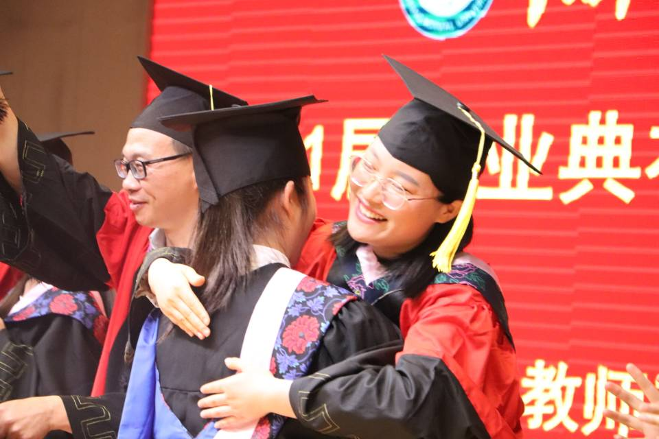 2017级本科二班张珍作为毕业生代表发言。她表达了对老师的感激、对校园生活的留恋、对自身成长的喜悦和对未来职业的向往。与此同时,她还着重谈到在民族复兴的伟大历史时期教师的重要性。她认为,新一代乡村教师应当守教育报国初心,担筑梦育人使命,用知识托举希望,助力民族复兴梦。随后,教师代表连亚飞发表讲话。他通过培养专业思维,把握专业知识,开展专业实练,积累专业情感四个方面向即将奔赴教师岗位的毕业生讲解如何成为一名合格的教师。薪火相传,赓续职业精神,这场师生之间的演讲以在校学生代表张秋雨的毕业祝福为结点,落下帷幕。
