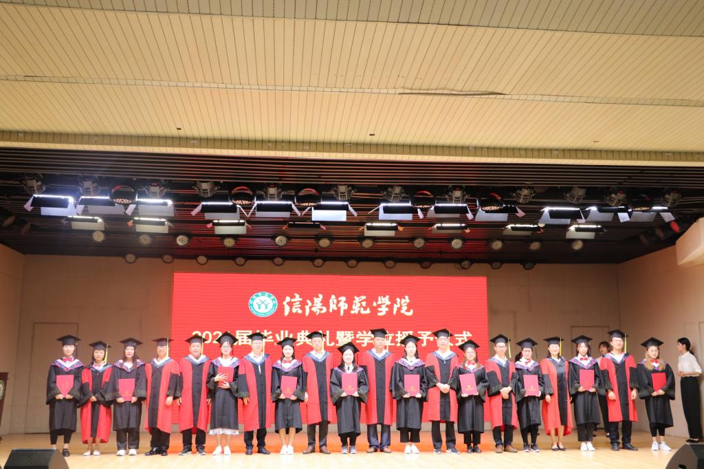 学院十名教师上台进行拨穗和学位授予仪式。拨穗,代表麦穗已经成熟,象征毕业生已学有所成,可以展翅高飞。身着学士服的189名毕业生有序上台接受拨穗和学位授予。麦穗从右到左,毕业生从稚嫩到成熟,手捧学位证书的的毕业生们已经随着麦穗的拨动翻开了人生的新篇章。仪式在毕业生坚定高歌“没有共产党就没有新中国”一曲中圆满结束。