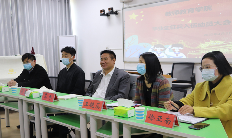 为深入贯彻习近平强军思想,响应国家鼓励大学生应征入伍政策,4月2日下午,best365英国体育在线特邀请我校人民武装部部长苏和、科长瞿巍莅临best365官网,出席毕业生征兵入伍动员大会。会议由学院党委副书记王艳蕊主持。best365官网人民武装专干姚雨承、毕业生辅导员徐亚南一同参加本次会议。