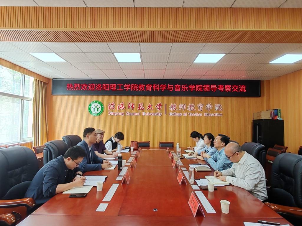 4月17日上午,洛阳理工学院教育科学与音乐学院院长雷海栋一行莅临best365官网进行座谈交流。best365英国体育在线党委书记潘登、院长李文田、小学教育系主任王陈祯、师范技能训练中心副主任康文慧、教师代表谭阿明等参加座谈会。座谈会由李文田主持。