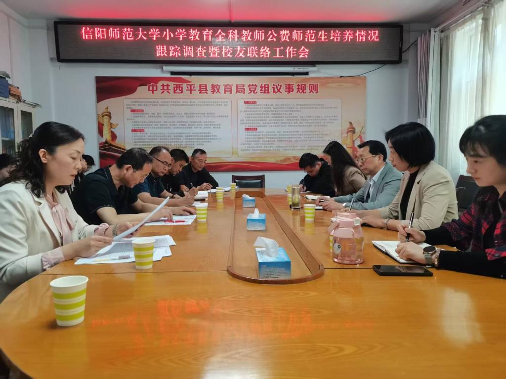 4月25日,best365英国体育在线党委书记潘登一行前往驻马店西平县开展小学教育全科教师公费师范生培养跟踪调查暨校友联络交流会。西平县教育局领导、基层学校校长代表、best365英国体育在线小学教育全科教师公费师范生毕业生代表参加。会议由西平县教育局教师教育股股长韩莹主持。