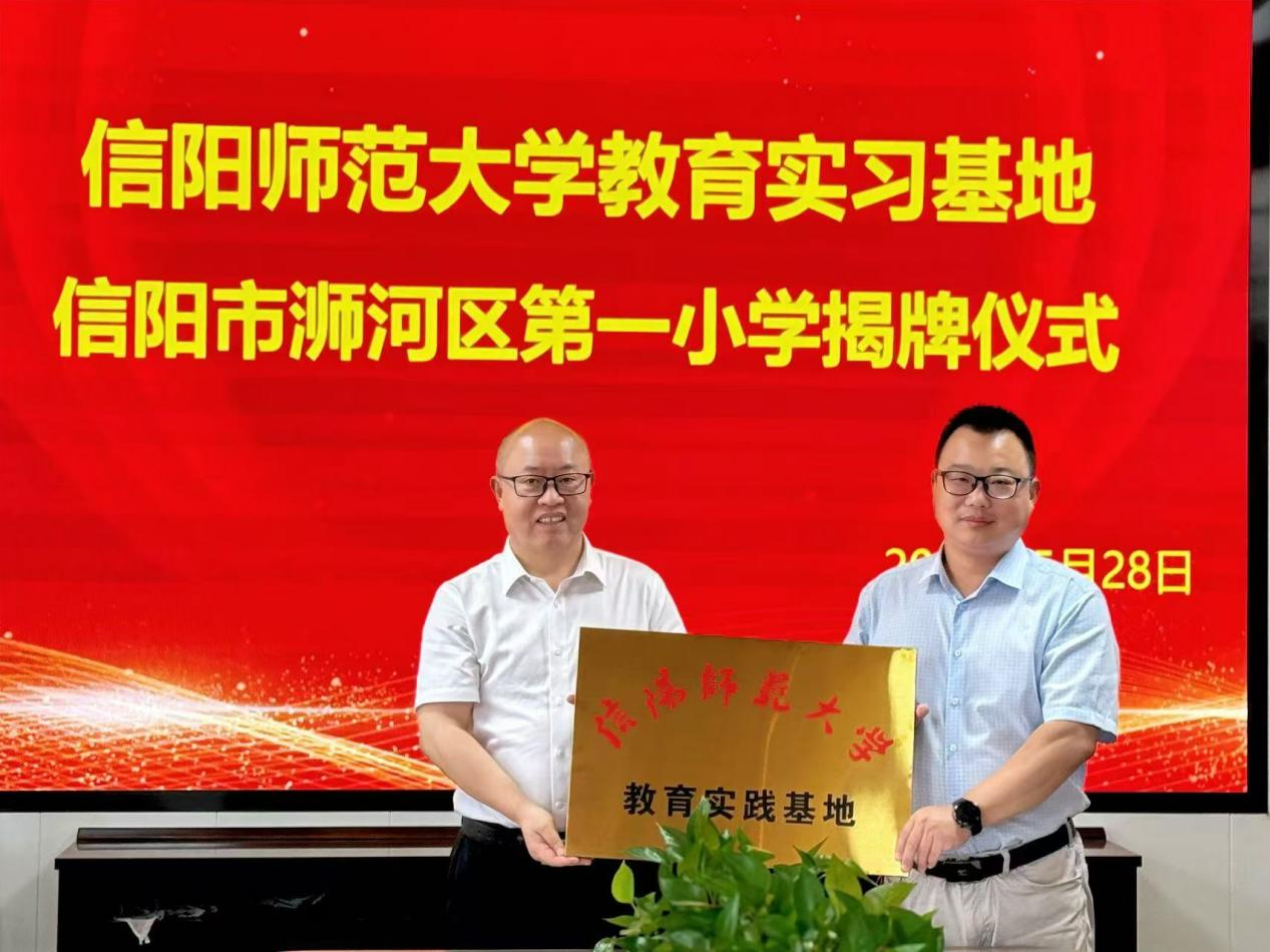 5月28日,best365英国体育在线院长李文田、实践中心主任张祥耀、科研与研究生秘书常燕燕一行赴信阳市浉河区第一小学、浉河区第五小学举行教育实践基地签约仪式。信阳市浉河区第一小学校长田宽、浉河区第五小学校长许勇等两校领导班子成员出席签约活动。